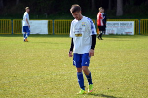 Ze začátku utkání ohrožovali hosté domácí bránu, ale ve vyložené šanci Pislcajka vychytal gólman Široký. Rokytnice také hrozila z útoků, ale v 19. minutě se radovali hráči Starče. Kaňka si naskočil na Pislcajkův centr a balón zaklidil za záda gólmana. O pár minut později nastřelila Stařeč tyč, což mohlo za okamžik mrzet. Hráč Starče ve vápně fauloval a sudí Kalina nařídil pokutový kop, který Vahil’a s přehledem proměnil. Do konce prvního poločasu se hrála vyrovnaná partie, a tak se do kabin šlo s výsledkem 1:1.
